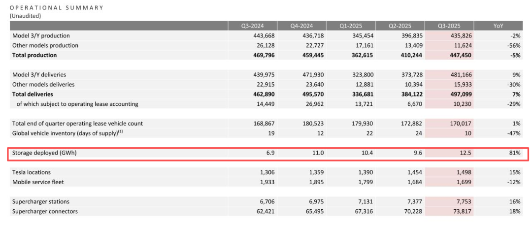 2025年Q3特斯拉部署了12.5GWh儲能,較去年同期增長了81%,且創下了單季度儲能部署記錄,這得益於上海超級工廠的持續擴建以及Powerwall的創紀錄部署量。