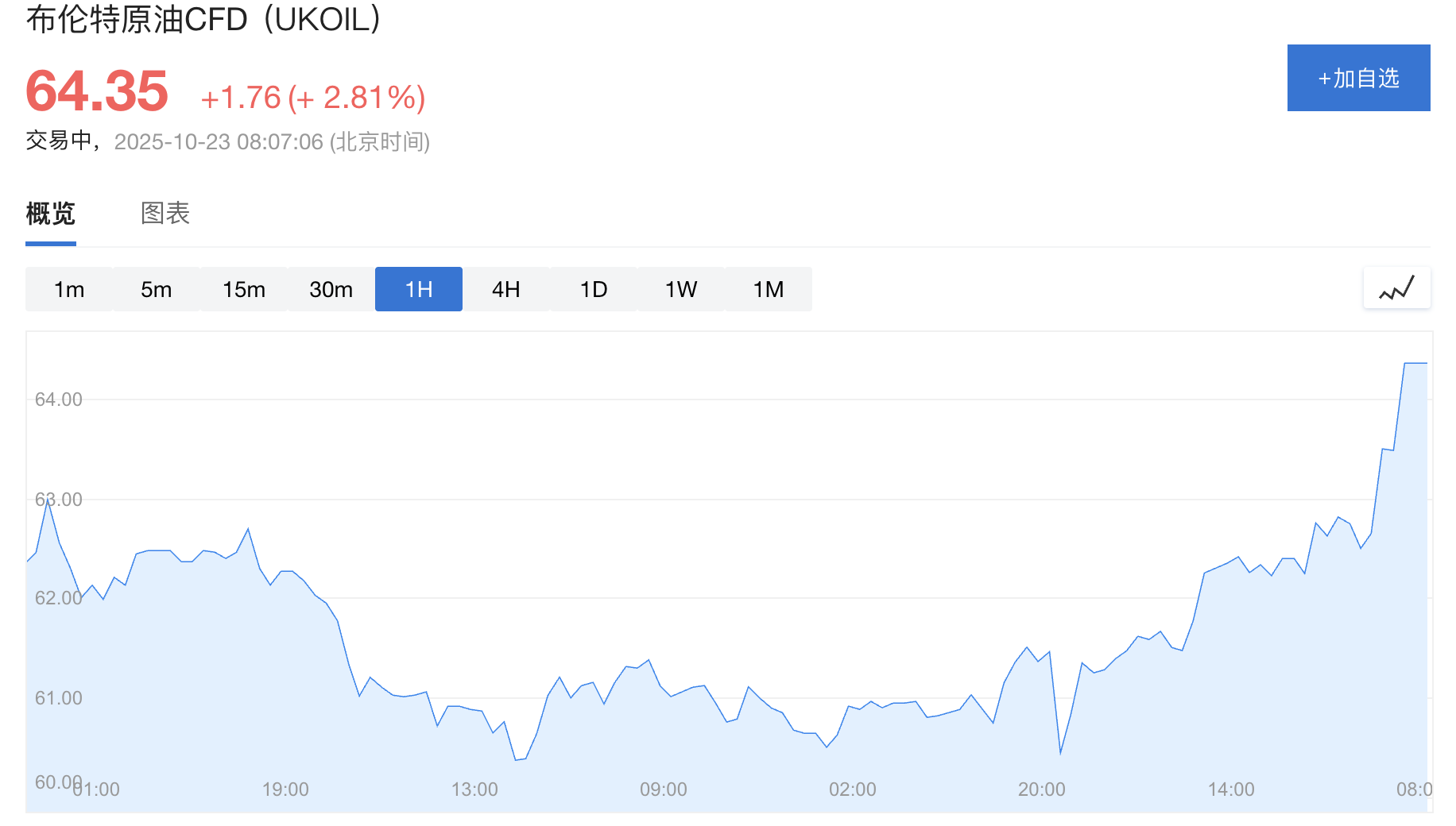 最新制裁意味着俄羅斯四大石油巨頭現已全部受到美國製裁。消息發佈後,市場對俄羅斯原油供應可能中斷的擔憂加劇,推動國際原油價格上漲超過4%。