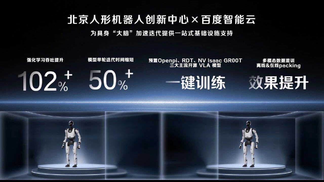 在具身智能行業,北京人形機器人創新中心近期發佈的具身世界模型和跨本體VLA模型等前沿成果,其底層基礎設施正是由百舸提供支撐,幫助其研發效率提升了2倍。