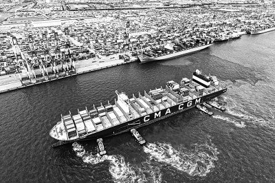 10月20日,在山東港口青島港,一艘貨輪在拖船輔助下停靠集裝箱碼頭。新華社發今年以來,我國經濟發展歷程很不平凡。面對外部壓力加大和內部困難較多的複雜局面,我國經濟發展頂住壓力,持續保持總體平穩、穩中有進發展態勢。