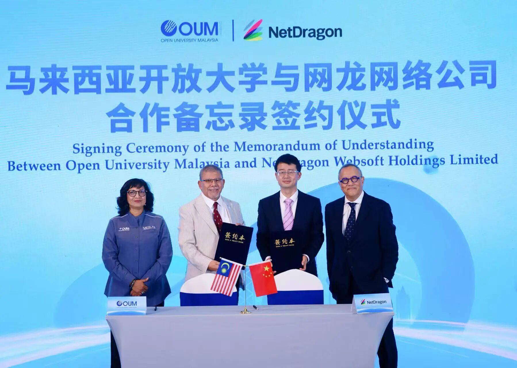簽約儀式在網龍副董事長梁念堅博士、馬來西亞開放大學副校長(學生體驗與科技)拿汀桑西·拉加文教授的共同見證下進行,由網龍高級副總裁陳宏、馬來西亞開放大學副校長(學術與研究)拿督莫哈末·達朱丁·莫哈末·寧加爾教授代表雙方進行簽約。