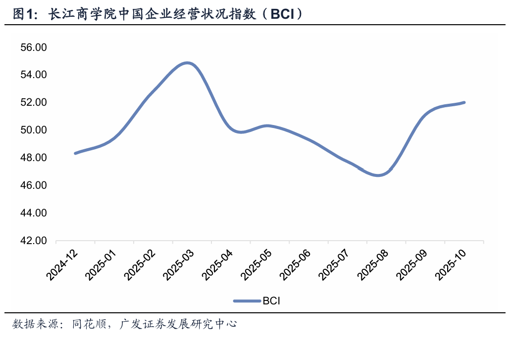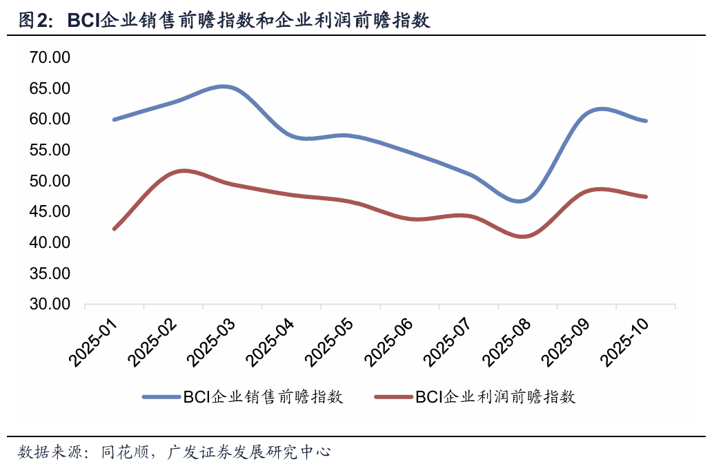 10月BCI讀數為52.0,高於前值的51.1。今年BCI下行壓力比較明顯是7-8月,5-6月讀數分別為50.3、49.3,7-8月回落至47.7、46.9;9-10月則明顯上行。