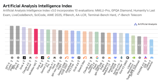 新浪科技訊 10月27日下午消息,新浪科技獲悉,國內AI獨角獸公司MiniMax稀宇極智今日發佈並開源了其新一代文本大模型MiniMax-M2。該模型在全球權威測評排行榜Artificial Analysis (AA)中總分位列全球前五、開源第一,與OpenAI、Anthropic、Google等硅谷巨頭同臺競技。