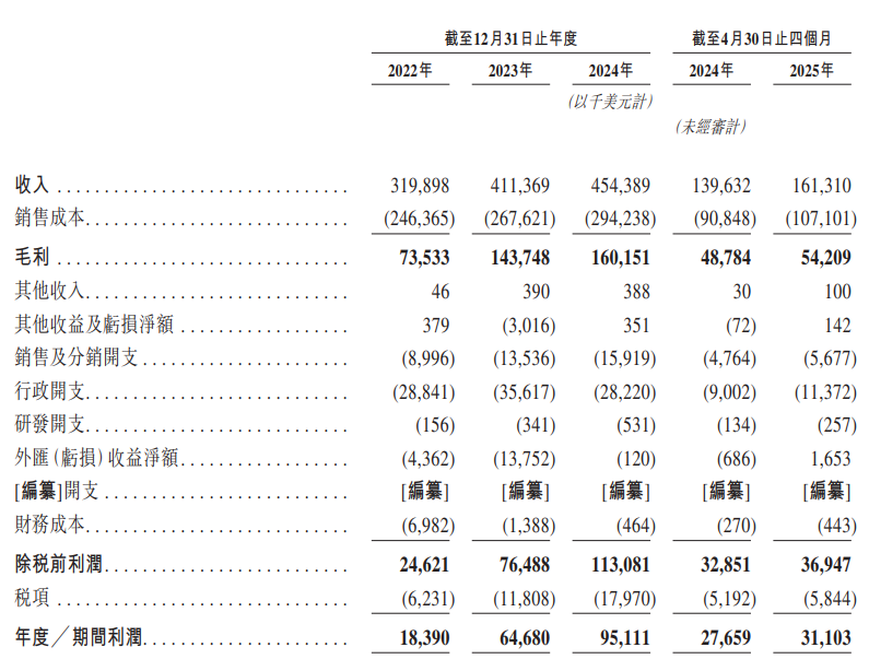 財務方面,於往績記錄期間,樂舒適實現了穩定增長,盈利能力持續提升。公司的收入由2022年的3.20億美元增加至2024年的4.54億美元,複合年增長率為19.2%,並由截至2024年4月30日止四個月的1.40億美元增加15.5%至截至2025年4月30日止四個月的1.61億美元,原因是公司持續提高在現有非洲市場的滲透率,同時藉助其品牌知名度及廣泛的銷售網絡將業務擴展至拉丁美洲及中亞。