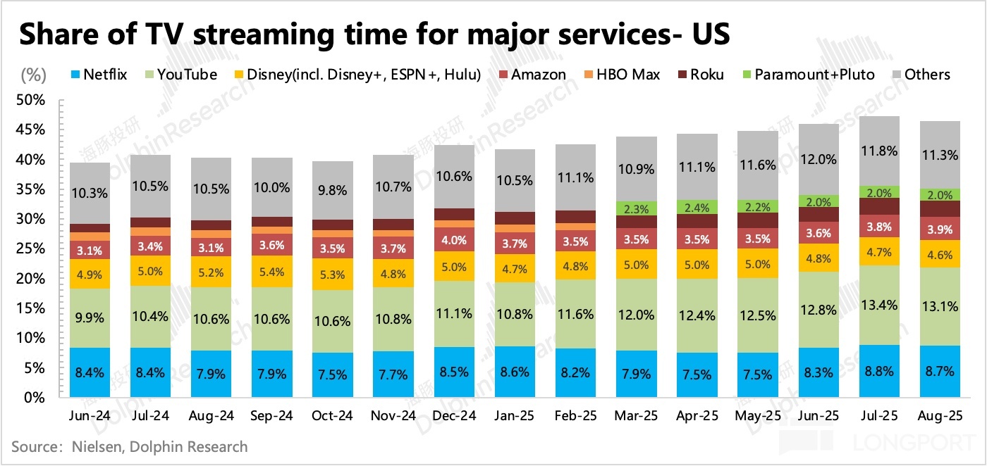 YouTube TV 收視時長領跑行業,且市佔率一直提升,音樂等內容也有利於推動付費會員的擴張,按照機構預估,YouTube 付費訂閱會員規模已經達到 1.2 億,面對 20 億 + 的活躍用戶基礎,這個付費率還有提升空間。