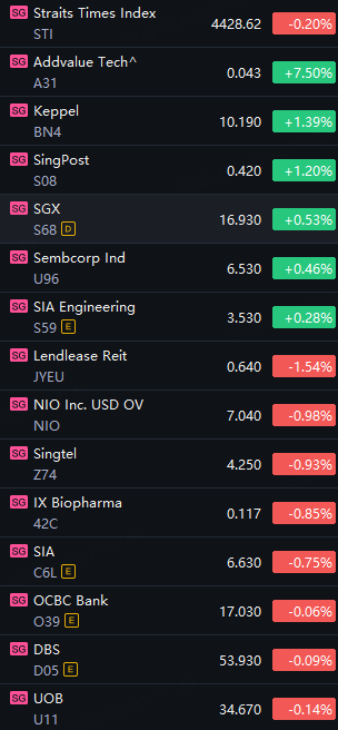 The Straits Times Index (STI), a key benchmark for the Singapore Exchange, ranged between 4,422.17 and 4,451.43 throughout the day. It ended the session at 4,428.62, down 8.82 points or 0.2% compared to Thursday's close.