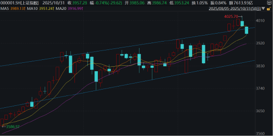 本週,市場先揚後抑,4000點得而復失。週一受貿易爭端趨緩等積極因素影響,滬指跳空高開,略有回落後調頭向上,日線級別突破通道上沿,且留下跳空缺口,漲勢獲得加速動能。週二至週四早盤,受中美首腦會晤等利好影響,市場情緒樂觀,一度上衝至最高4025點,再創近十年新高。但需要注意,恐高情緒的拋盤壓力並不小,整數關口多次易手。週四下午,利好落地導致市場短線回落,今日則在Meta大跌超10%的影響下,滬指繼續下挫,重回上漲寬通道內運行。