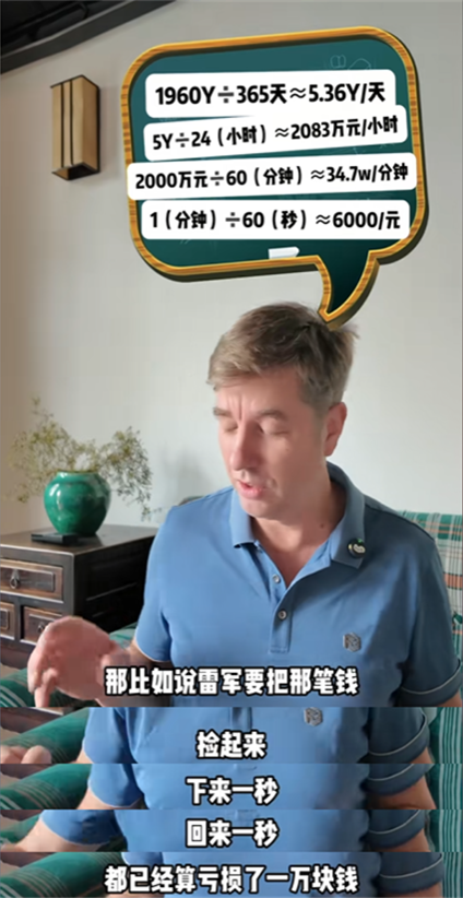 所以,如果地上掉了1萬塊錢,雷軍要把那筆錢撿起來,「下來一秒,回來一秒,都已經算虧損了一萬塊錢。」