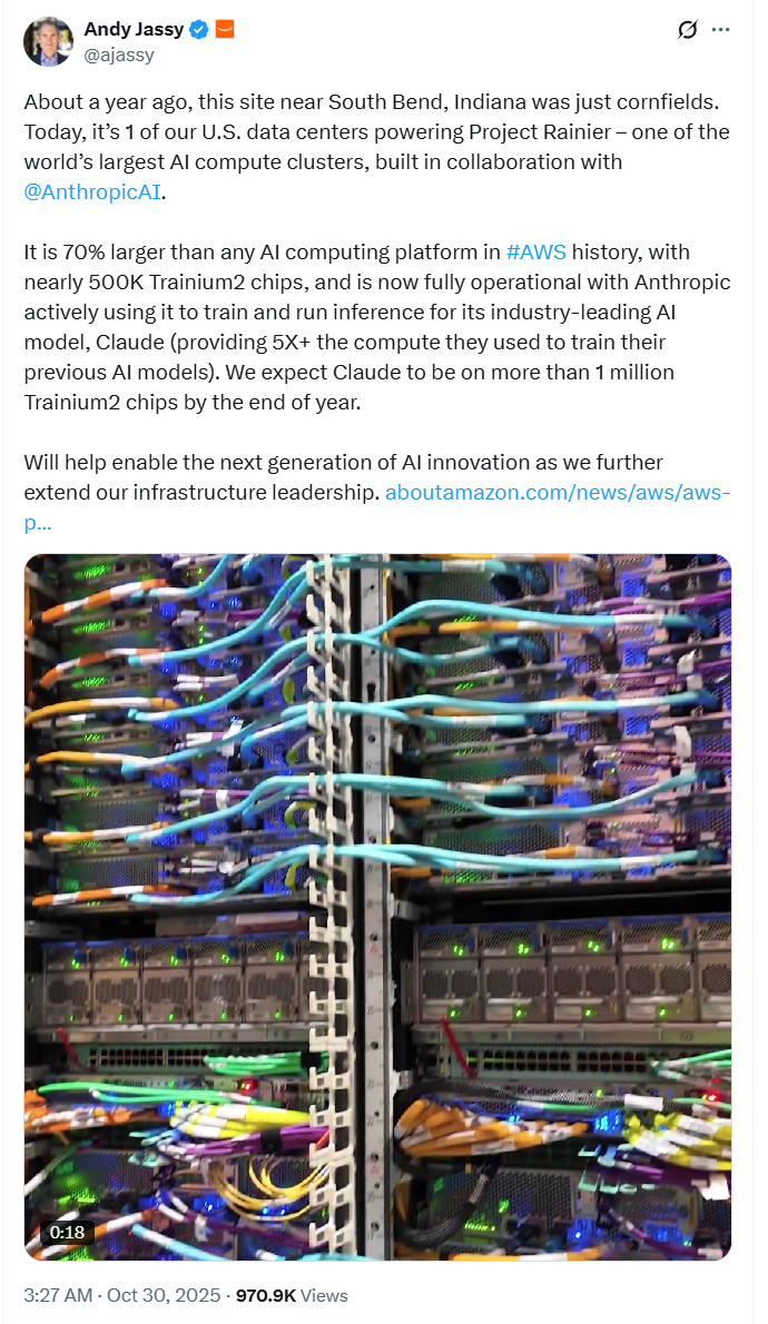 亞馬遜在周初因裁員1.4萬人及被質疑「AI掉隊」而備受壓力。然而,公司週四公佈的財報成為最強有力的回擊:AWS銷售額同比增長20%創兩年新高,自研AI芯片業務規模達數十億美元。這份「超預期」成績單不僅推動股價飆升至歷史新高,更讓亞馬遜扭轉市場敘事。對於亞馬遜及其首席執行官Andy Jassy而言,啱啱過去的一週堪稱坐上了過山車。這家科技巨頭以歷史性的大規模裁員和外界對其AI戰略的質疑開啓了本週,卻...