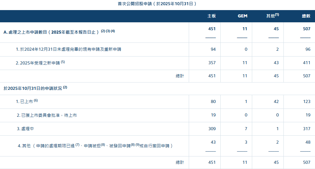 據港交所披露,今年以來受理之新申請數量達到411個,其中357個主板,1個GEM。目前,已獲上市委員會批准,待上市數量為19家。