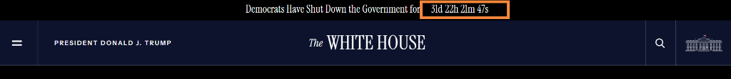 31天22時21分,白宮官網關於政府關門的計時還在繼續……