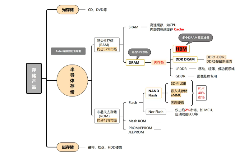 HBM(高帶寬內存),作為目前所有存儲芯片中最高端的產品,在Ai算力中有重要作用,是大幅提升計算效率的關鍵,但很可惜,HBM的市場規模從0起步,直至今年才佔到整個存儲芯片的20%。換言之,前兩年各類低門檻的存儲芯片,仍然佔據行業80%以上份額。10%的收入翻倍,只是整體增長10%。