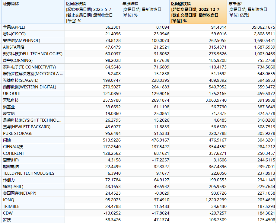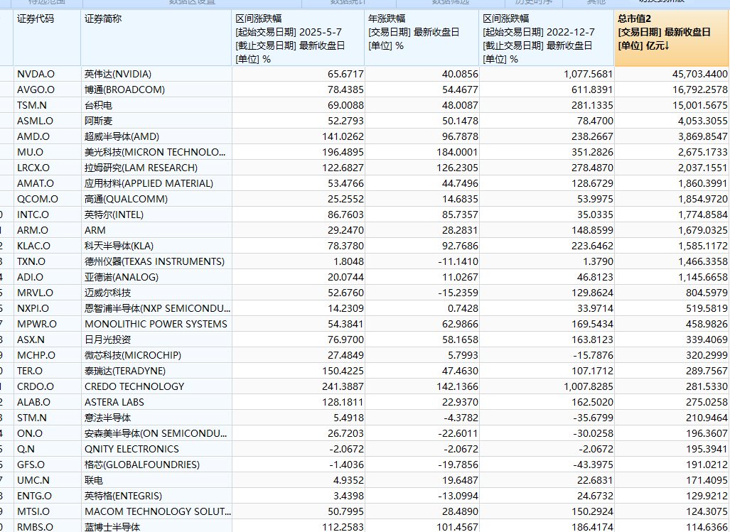 當前看到,大體上3年漲幅、今年漲幅及半年漲幅,衡量了這些股票是從chatgpt開啓的浪潮以來的先漲、後漲順序和強度。事實上像存儲巨頭們的後漲屬性明顯,但是總漲幅實際上也非常不錯。