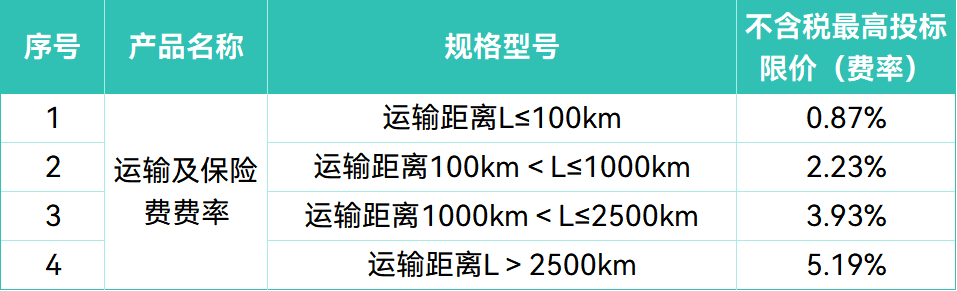 此外,運輸及保險費率則按運輸距離階梯設定,最高不超過5.19%。