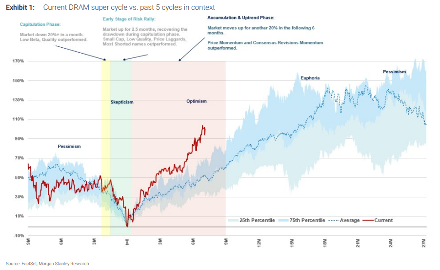 據追風交易臺,摩根士丹利在最新的報告中指出,DRAM價格正突破歷史高位,開啓一輪前所未見的"超級週期"。