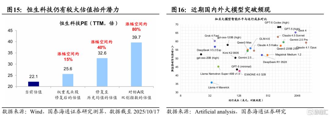 ①港股具備低估值優勢。指數層面,港股估值處全球窪地,截至11/6,恒生科技PE處有數據以來30%分位。行業層面,港股科技等板塊相較A股、美股估值吸引力更高。國產AI產業趨勢近期不斷提速,估值盈利視角下港股中期估值抬升潛力大。