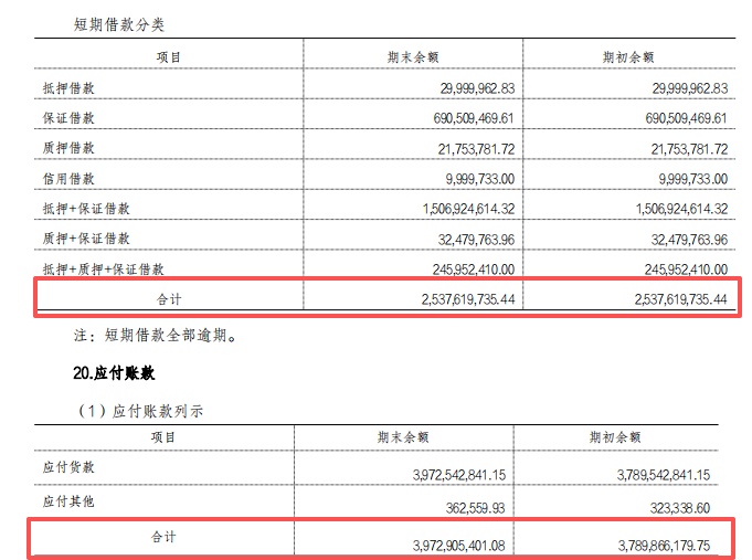 而同期公司的短期借款卻高達25.38億元,且已全部逾期。