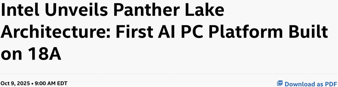10月,英特爾曾宣佈了1.8nm製程的AI芯片——Intel Core Ultra 3,預計年底出貨。