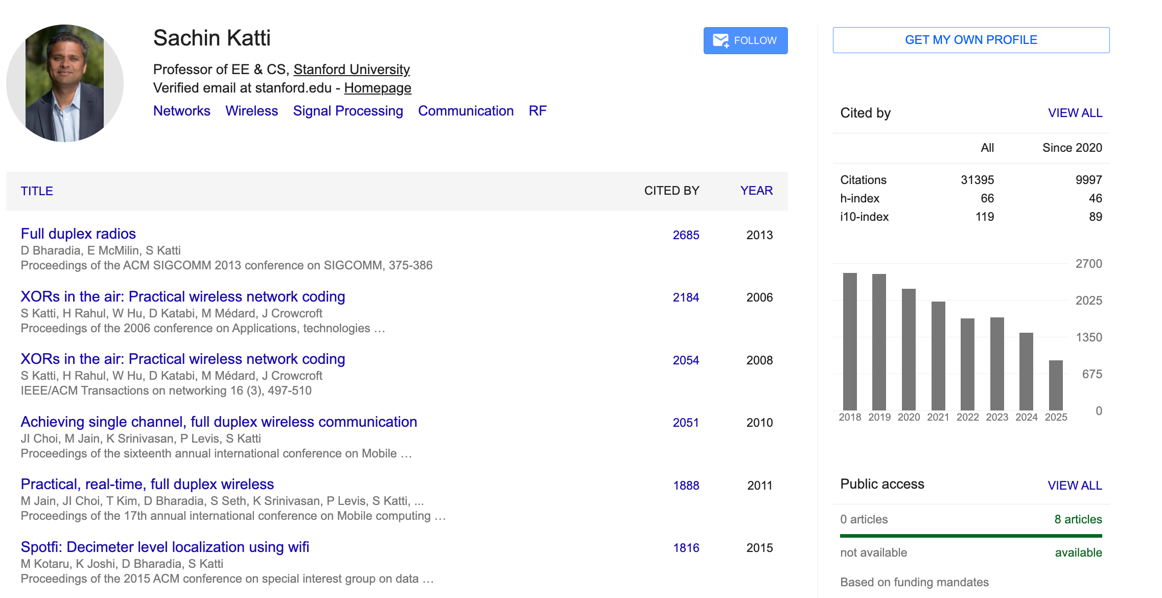 Google Scholar顯示,Sachin Katti曾發表多篇有影響力的論文,總被引數超3萬次。