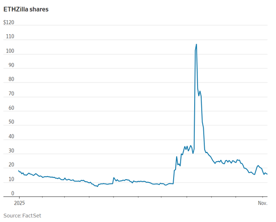 這曾是今年大半年裏的「首選交易」:賣出股票或借款,再將資金大舉投入比特幣、以太坊及其他加密貨幣。投資者推高了這些「加密貨幣財庫公司」的股價,將其視為放大波動劇烈的加密貨幣市場押注收益的工具。