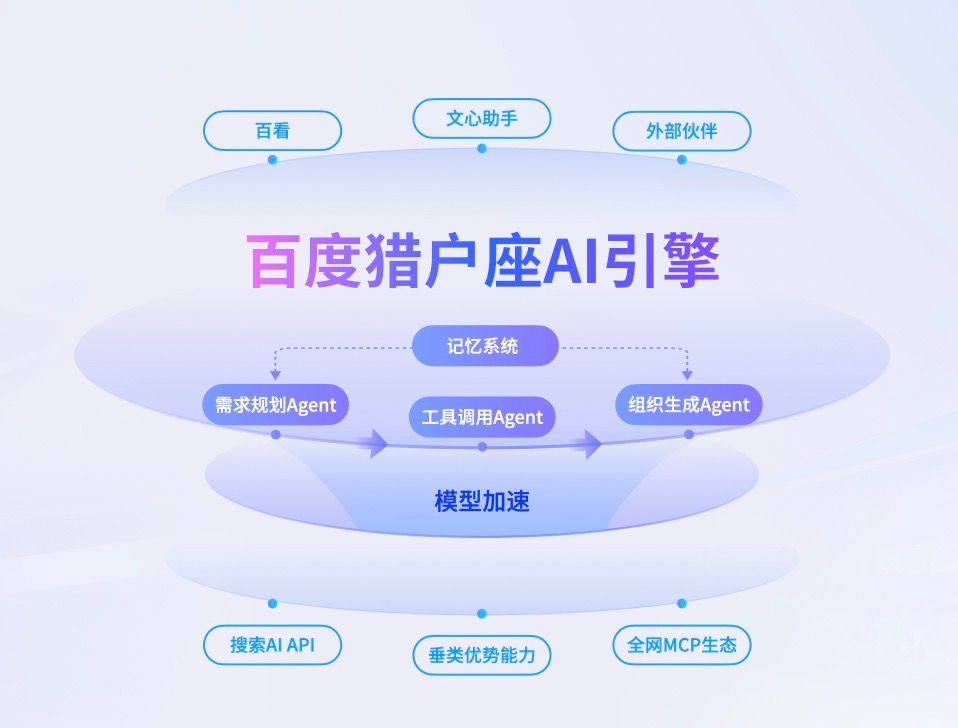 百度獵戶座被定義為百度搜索系統的「超級大腦」。統一鏈接了信息、工具、服務、模型和界面,支撐百度百看、文心助手等AI應用,以及全網優質的MCP生態資源,並在發佈後即宣佈對外開放。這被業內認為是百度搜索首次全面開放25年來積澱的搜索技術和前沿AI能力。