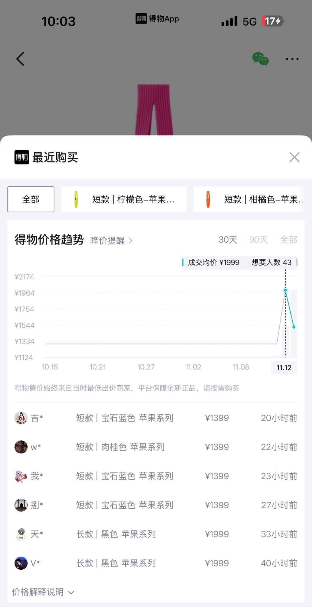 此次推出的iPhone Pocket分為短款和長款兩個版本,短款售價1299元,提供檸檬色、柑橘色、紫色等八種色彩;長款售價1899元,擁有寶石藍色、肉桂色、黑色三種選擇。開售不久後,肉桂色長款便率先售罄,潮玩平臺得物上,長款市場價已漲至2399元,短款漲至1699元,溢價幅度最高達500元。