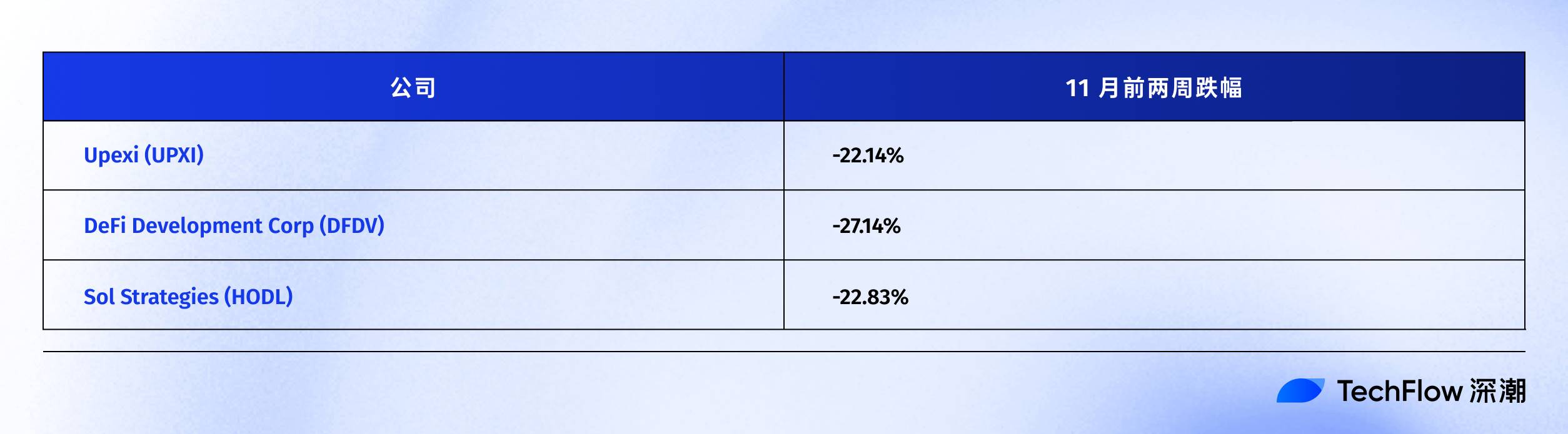 這些公司都是比特幣礦工+財庫模式,11 月前兩週,BTC 跌了約 15%,但它們的股價跌幅都超過 30%。