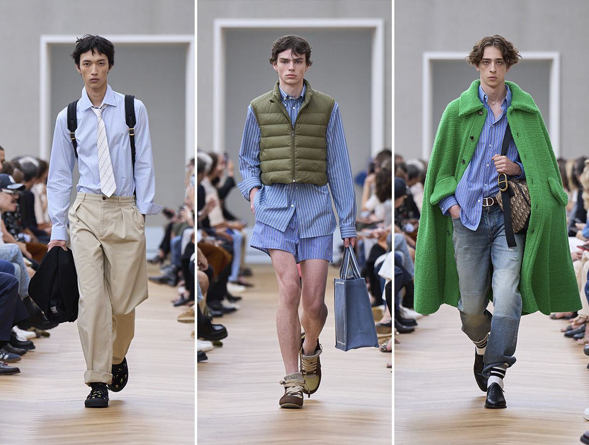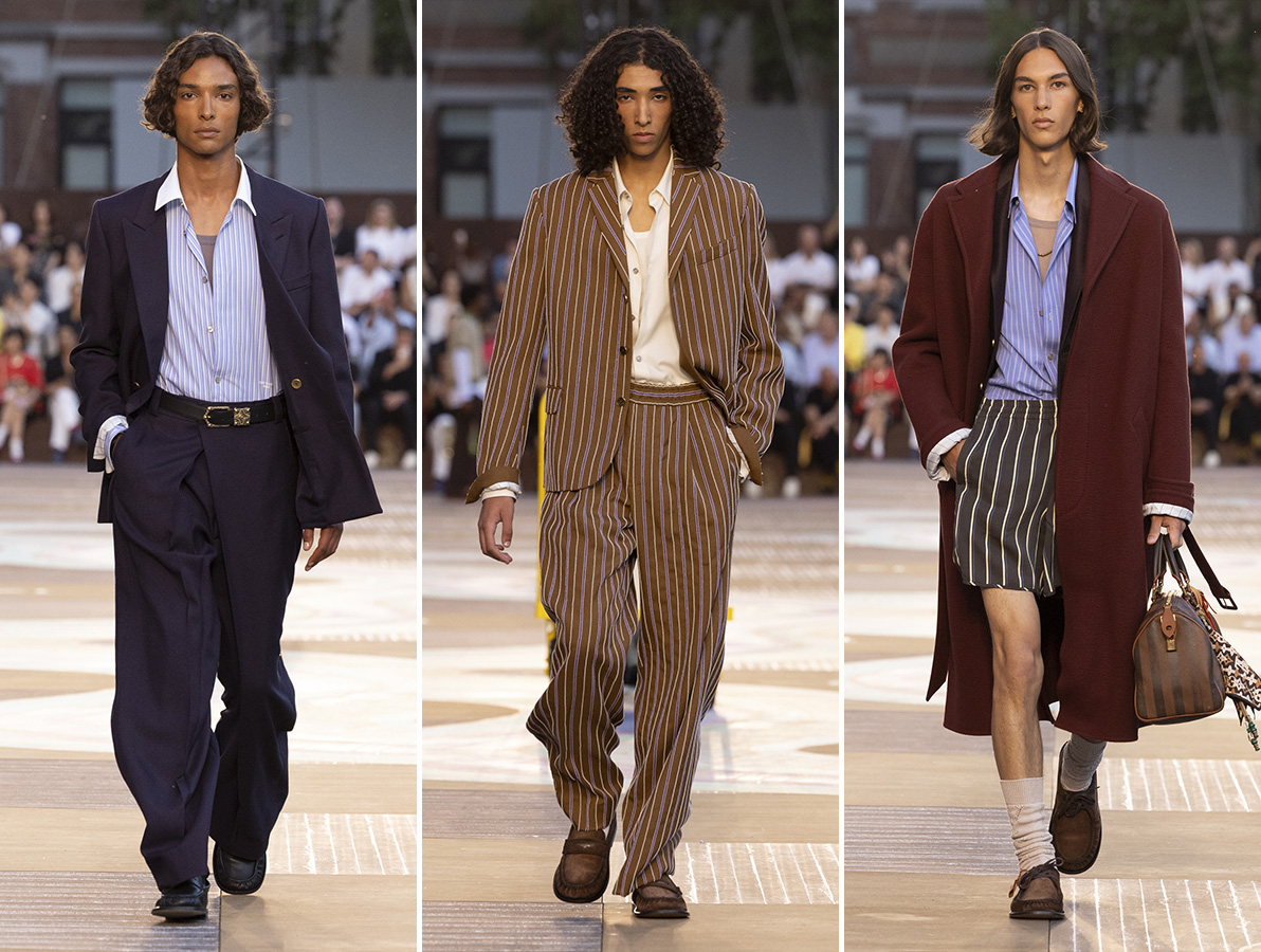 在喬納森·安德森為迪奧帶來的首個男裝系列中,多款藍白間豎條紋襯衫反覆出現,彰顯了這件基本單品的百搭屬性。而本季男裝的另一趨勢,正是條紋、格紋、精緻刺繡與圖案元素的廣泛運用。這些元素提升整體風格和質感,為男士衣櫥注入煥然一新的活力。