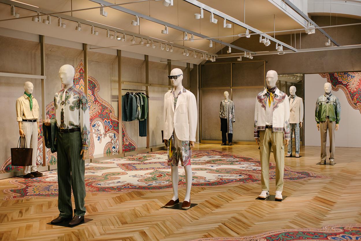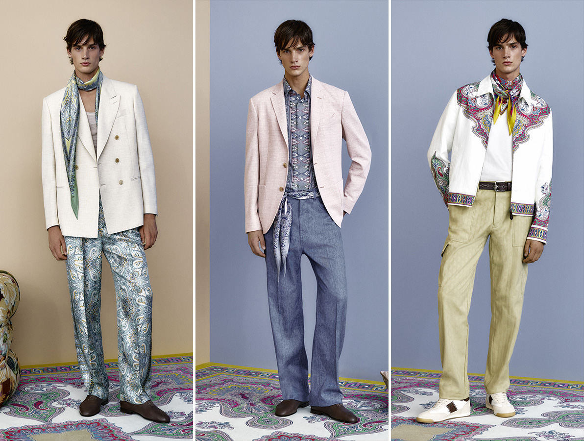 佩斯里花紋一直是ETRO的標誌性元素。本季圖案以現代筆觸,在亞麻、真絲、提花針織與不同克重的棉布上綻放。淺粉、長春花色與鼠尾草綠等色彩在通過柔和的色調組合、精緻的冷暖色澤與鮮活的明暗應用中和諧相融。而領帶設計將品牌標誌幻化為微觀幾何形態的水滴,如萬花筒般流轉變幻。佩斯里花紋貫穿整個系列,彷彿象徵Etro男士那充滿好奇與獨立不羈的靈魂,在傳統與革新中持續煥發當代表達。
