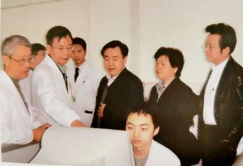 2004年11月,宋寧(前排中)與夏家輝院士(左一)、梁德生教授(左二)一起接待樊代明院士(右三)等人