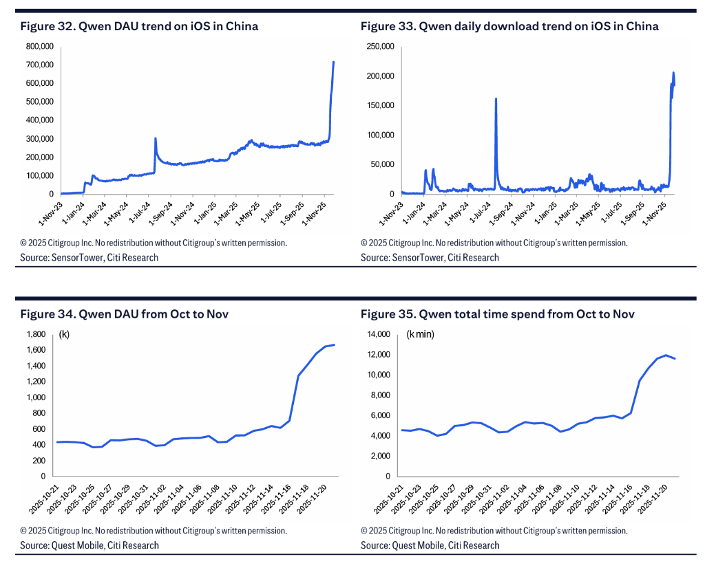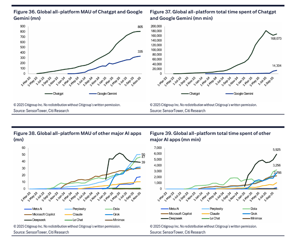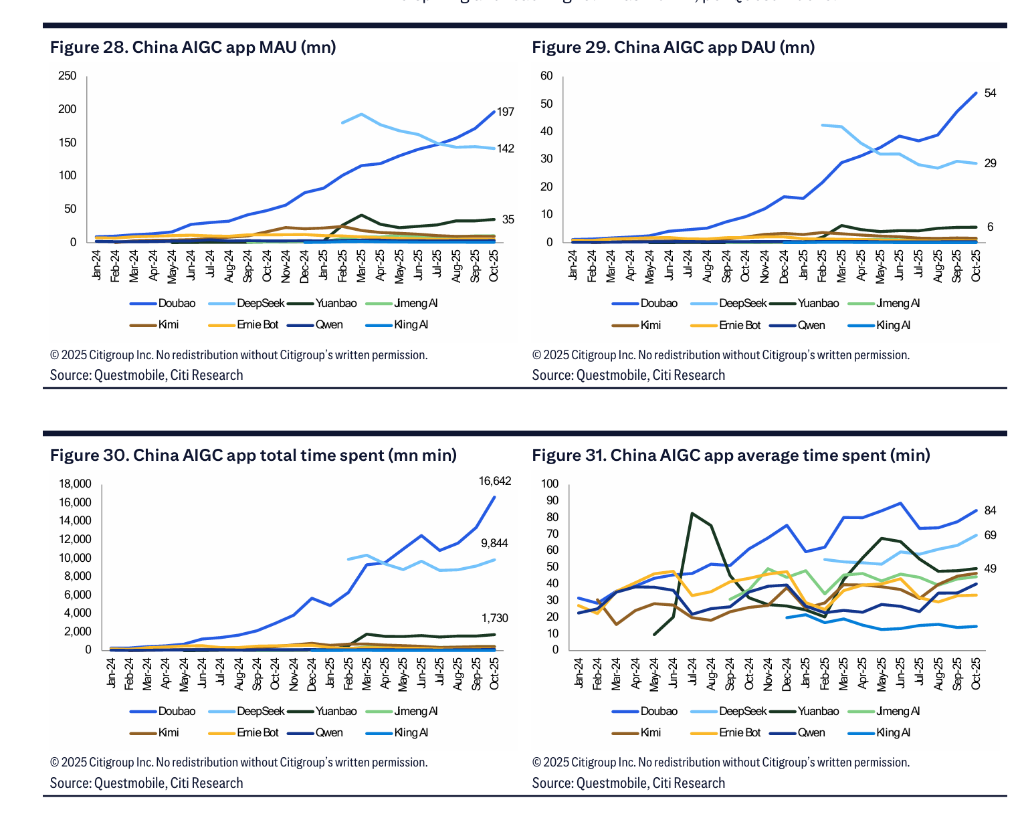 花旗分析師指出,如果將Dola的海外用戶(4700萬)與「豆包」的中國用戶(1.97億)合併,字節跳動旗下AI聊天產品的總MAU將達到約2.5億,使其在全球排名升至第三位。報告稱這是一個「重要的里程碑」,顯示出中國AI應用在全球,尤其是在拉美和東南亞等新興市場,擁有快速增長的潛力。