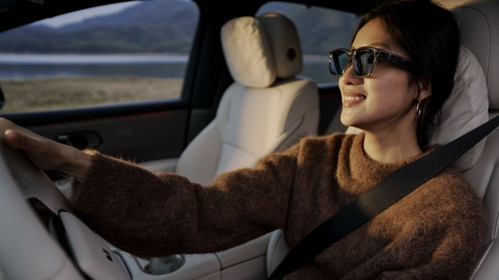 更有意思的是車機聯動。當佩戴眼鏡上車時,輕觸眼鏡觸控板即可完成與車機連接,後續上車自動連接,連接後如果你使用的是墨鏡款,既能清晰查看HUD信息,又能通過Face ID快速解鎖。