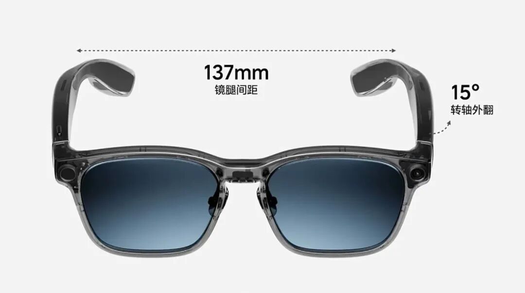在外觀設計上,鏡框外形「上圓下方」,環抱式設計,鏡腿間距137mm,全系半透明質感,採用亮光、啞光等材質,支持經典黑、科技灰、橄欖綠等顏色。