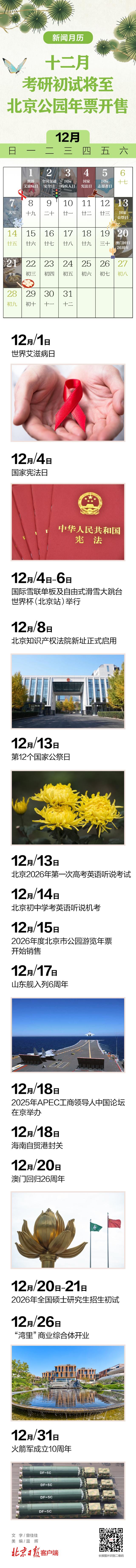 新聞月曆|十二月,考研初試將至,北京公園年票開售