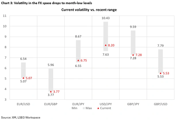 近期市場相對平靜,1個月期波動率普遍下降,但下週可能會劇烈變化。如果聯儲局確認降息預期,加上偏中性到鴿派的措辭,以及點陣圖顯示三次降息,將強化當前脆弱但佔主導的風險偏好情緒。股市和黃金有望上漲,而美元可能難以扭轉當前的疲弱趨勢。歐元兌美元若強勁突破 1.1700,創出新的短期高點,將確認短期的看漲趨勢。