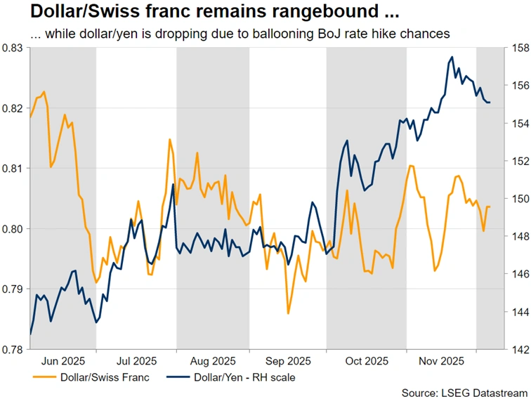 不過並非全是壞消息,近期PMI調查和10月零售銷售均出現上行意外。更重要的是,美國與瑞士達成了貿易協議,美國的關稅從39% 降至 15%,瑞士承諾在2028年底前投資 2000 億美元。