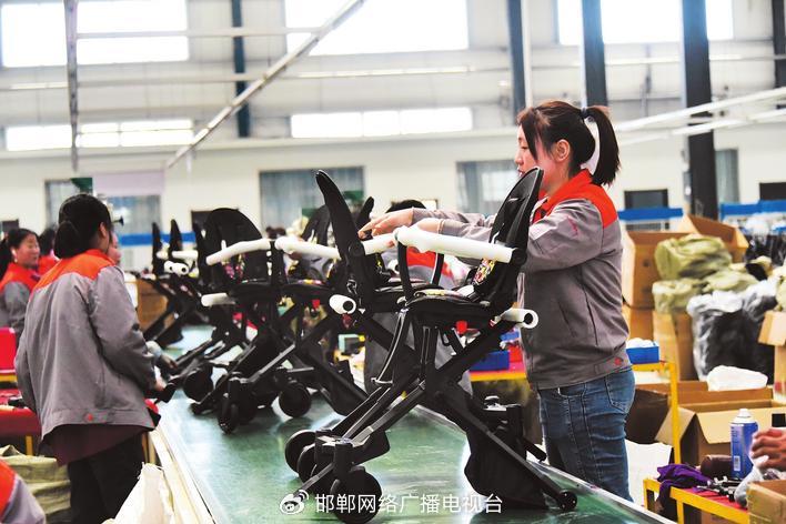 該公司坐落於河北省邯鄲市曲周縣經濟開發區。在公司生產車間的智能生產線上,機械臂精準完成零部件組裝,工人正仔細檢測童車的避震系統和安全鎖釦。「自2017年成立以來,我們每年將營收的8%投入研發,現已獲得49項國家專利,產品銷往30多個國家和地區。」技術總監張大豐說。