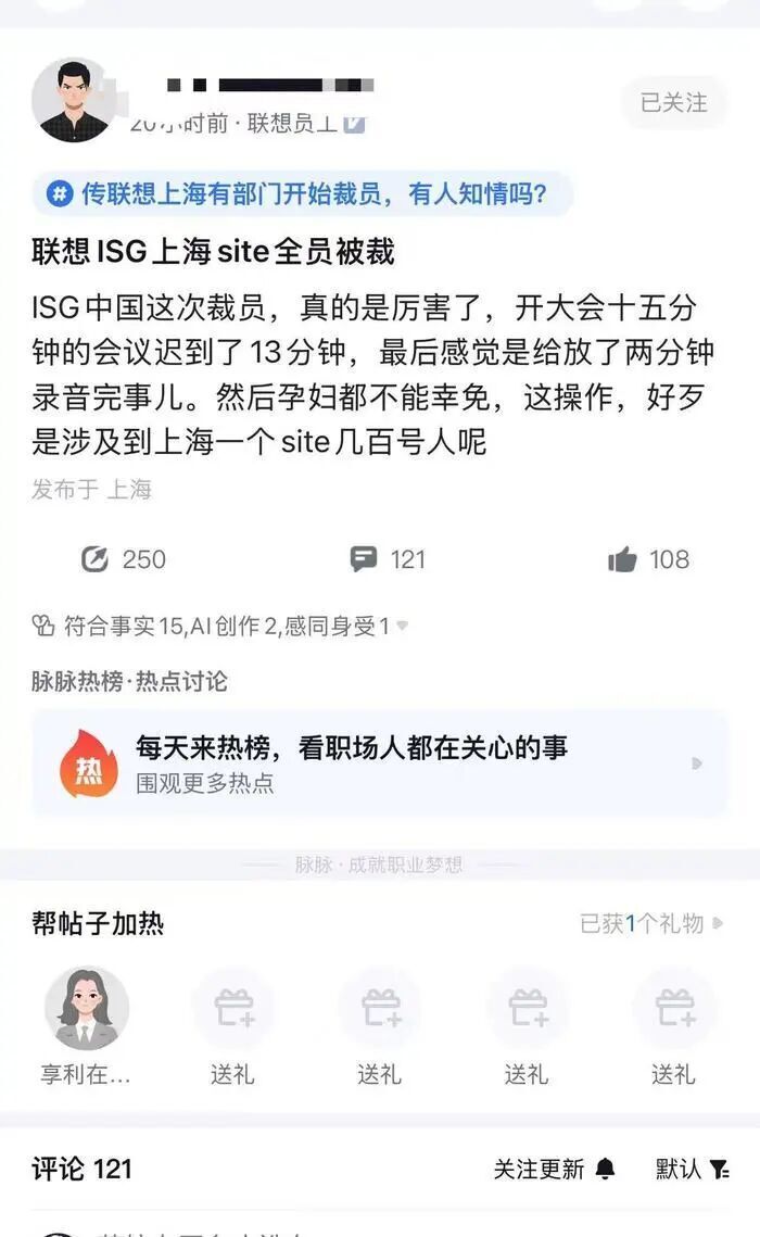 聯想ISG上海分部是調整的重災區,甚至有員工稱該站點面臨「原地解散」。