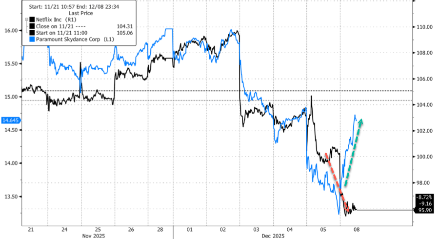 派拉蒙以每股30美元全現金方式發起對華納兄弟的競購,其高達1084億美元的企業估值和資金確定性對奈飛的現金加股票方案構成直接挑戰。隨着特朗普對奈飛交易表達反壟斷擔憂,派拉蒙方案在監管與市場層面均獲優勢,令交易天平發生傾斜,華納兄弟股東面臨確定溢價與漫長審批風險之間的關鍵抉擇。