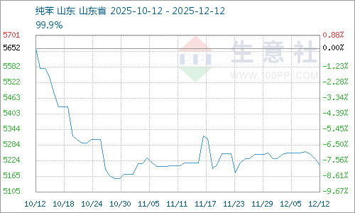 據生意社商品行情分析系統,本週山東地區純苯市場價格先漲後跌,整體來看價格下跌。週一純苯價格在5254.33元/噸,週五純苯價格在5207.67元/噸,周內價格下調0.89%。