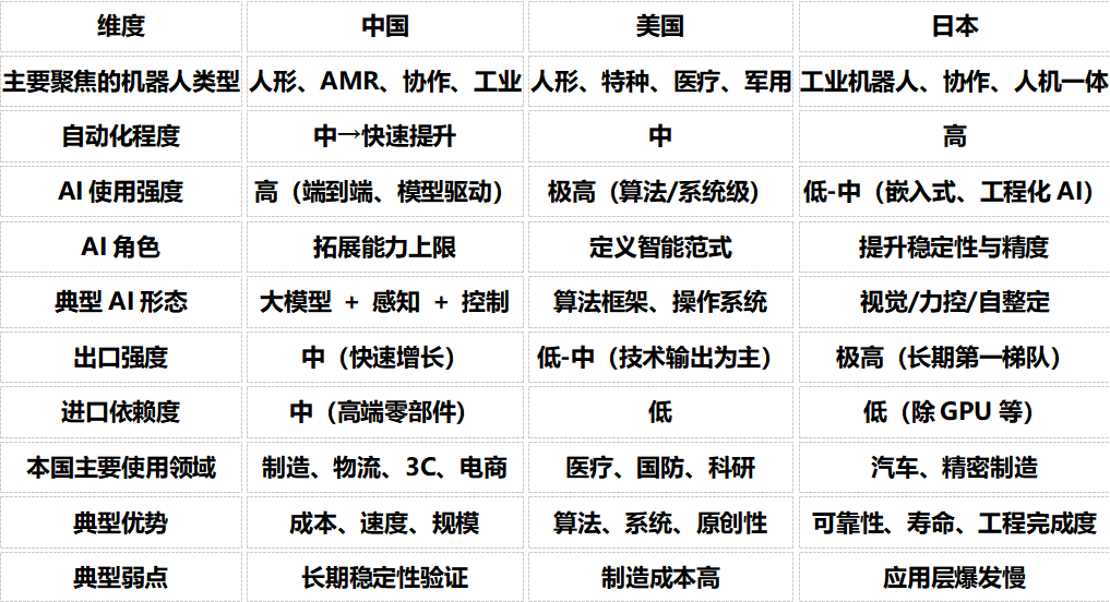 那麼當前日本工業機器人的智能化,主要集中在中層,通過智能算法把任務做得更穩、更準、更久。而宇樹等人形機器人,正在嘗試把AI推向上層任務理解與決策層,先理解世界,再決定做什麼。