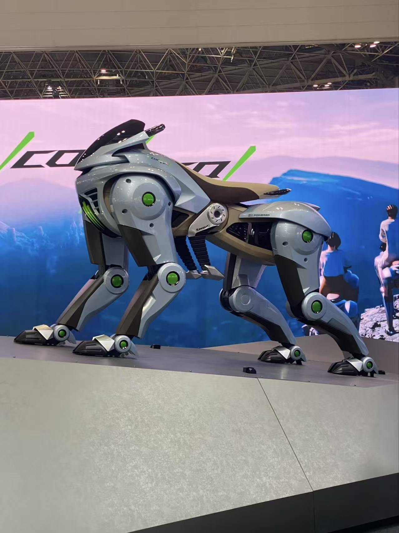 日本不搞人形,但是有人形的前哨「四足」。這次在東京機器人展上看到了川崎的CORLEO,這是一種概念型四足機器人載具,使用氫能源,支持人類騎乘與複雜地形穿越。