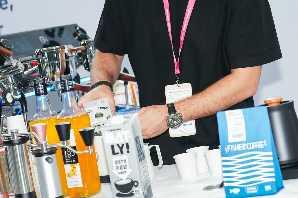 在深圳舉行的2025國際酒店及餐飲業博覽會(HOTELEX)上,SCA世界精品咖啡協會體驗空間人潮湧動。來自各地的冠軍咖啡師們先後亮相,分享他們在國際賽場的咖啡組合。明星咖啡師們控制手中奶缸和咖啡杯的擺動,隨後手腕沉穩下落,細膩的奶泡便在杯中拉出一個精美的花型。他們手中熟練使用的,正是OATLY的燕麥奶。
