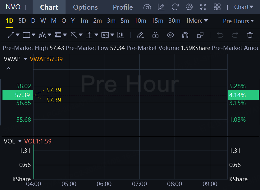 Novo stock rose more than 4% in premarket trading on Tuesday after rising 5.2% in prior trading session.