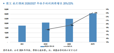 摩根大通預測2026年快手的調整後淨利潤率將同比上升1.4個百分點。2026年調整後淨利潤預計同比增長20%,2027年將繼續增長23%。這一盈利預測比市場一致預期高出8%。
