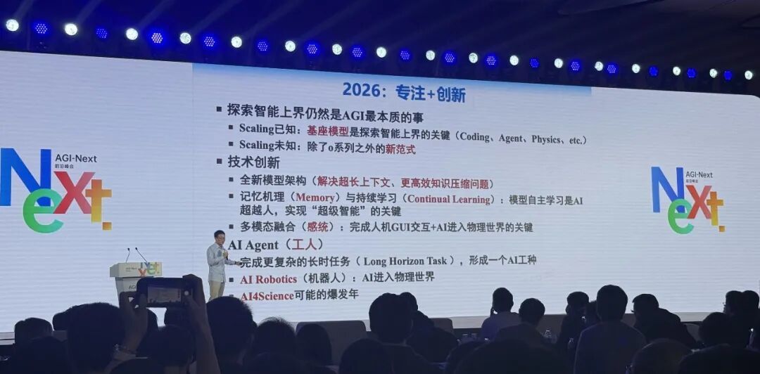 1月10日,鳳凰網科技現場參與了由清華大學基礎模型北京市重點實驗室低調發起的一場名為AGI-Next的前沿峯會,與會人物除了前述提及的三人,還包括Qwen技術負責人林俊暘。他們要探討的,正是邁向AGI下一階段的關鍵路徑。