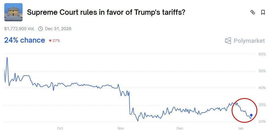 據央視新聞,當地時間1月6日,美國最高法院宣佈,將在本周五(1月9日)就關稅問題作出裁決。儘管市場普遍預期這項不利於特朗普的裁決將在短期內提振股市並給債市帶來壓力,但投資者的焦點已迅速轉移至白宮可能採取的後續應對措施上。