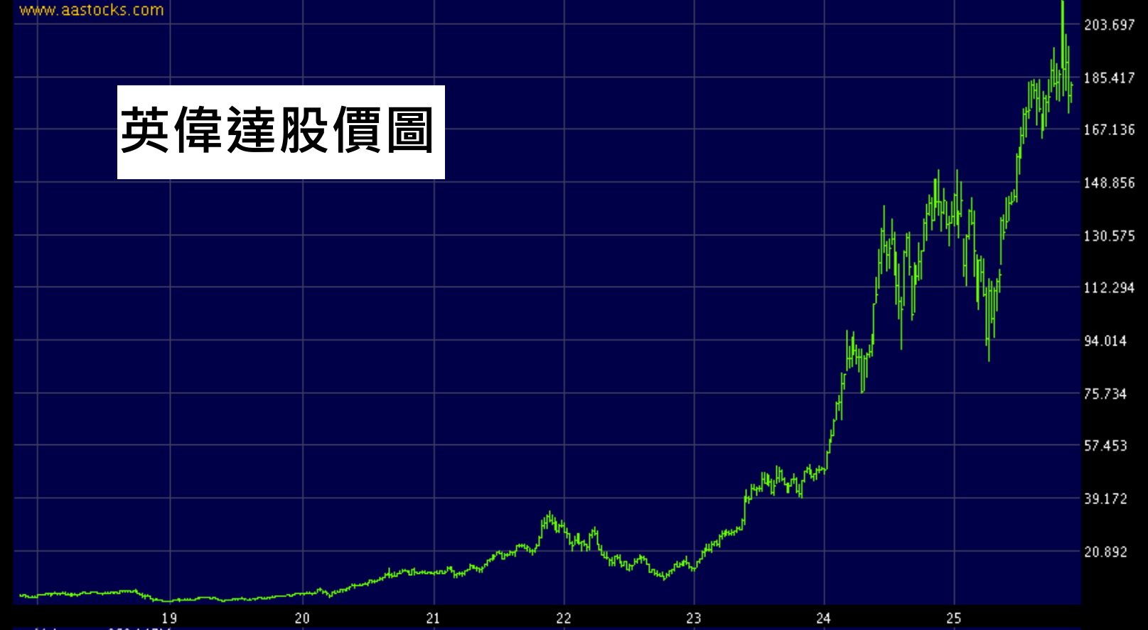 【圖3】--英偉達股價持續向上雖然這個擔心在2024年、2025年持續出現,但每次都只會令股市出現短期調整,之後又再上升過。原因是2024年,2025年,科技企業的業務的確有實質增長,有實力的科技企業,財務數據理想,企業價值有實在提高。