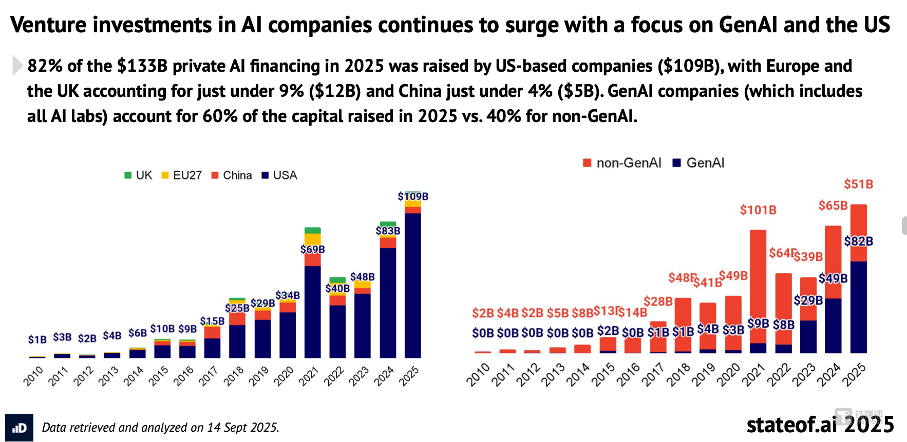日前,AI領域投資人、風投公司Air Street Capital聯合創始人內森·貝奈奇(Nathan Benaich)與其團隊共同發布了《人工智能現狀報告 2025》。該系列報告已連續發布八年,而本次報告長達300多頁,由業界和研究領域的頂尖AI從業者進行評審,涵蓋了技術研究與產業、政策與安全、用戶市場調研等多個維度。