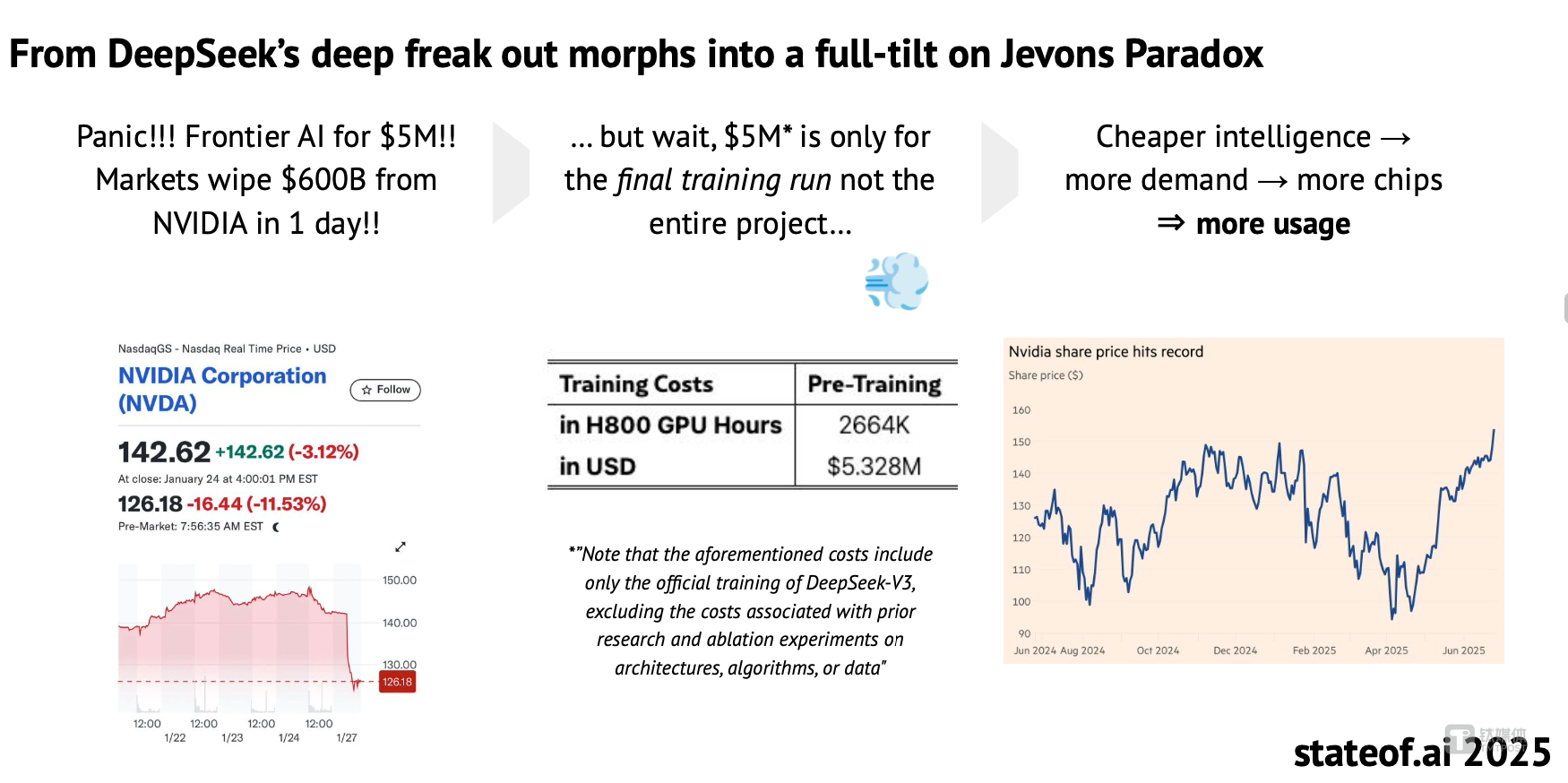 報告提到了2024年末DeepSeek對整個AI市場的攪動,市場重新認識「傑文斯悖論」,即更便宜的智能,帶來更高的需求,更高的需求又會提高對芯片的消耗。